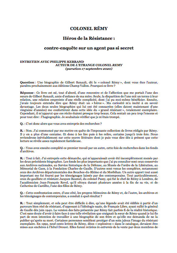 ENTRETIEN AVEC PHILIPPE KERRAND AU SUJET DE LA PARUTION DE L’ÉTRANGE COLONEL RÉMY